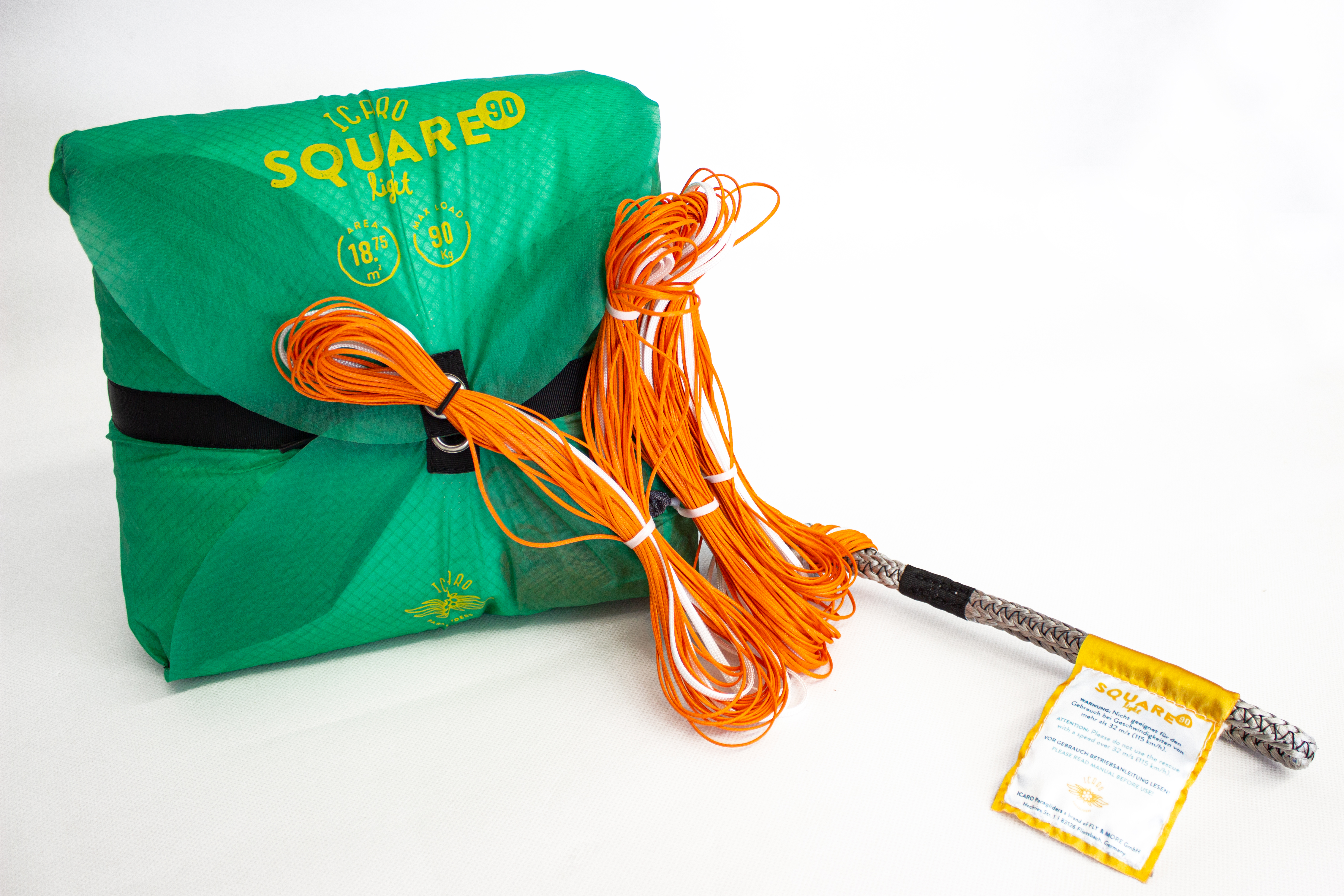 Der neue Square light von ICARO ist ein moderner, sehr leichter (ab 0,89 kg) Kreuzkappen-Rettungsschirm, der aufgrund seiner Konstruktion eine sehr kurze Öffnungszeit sowie eine hohe Pendelstabilität aufweist.